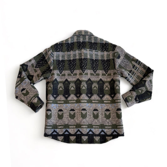 Zig Zag Knit Polo Cardigan - Green/Cream/Black
